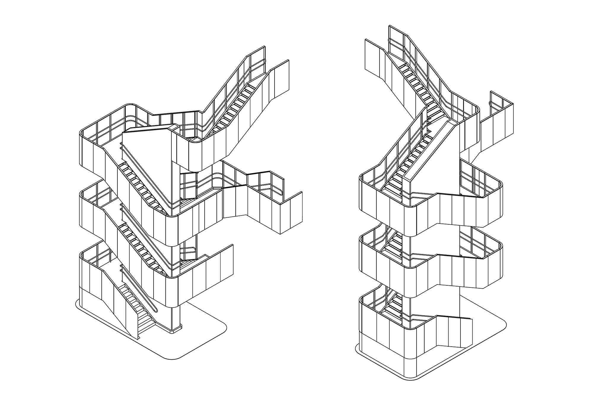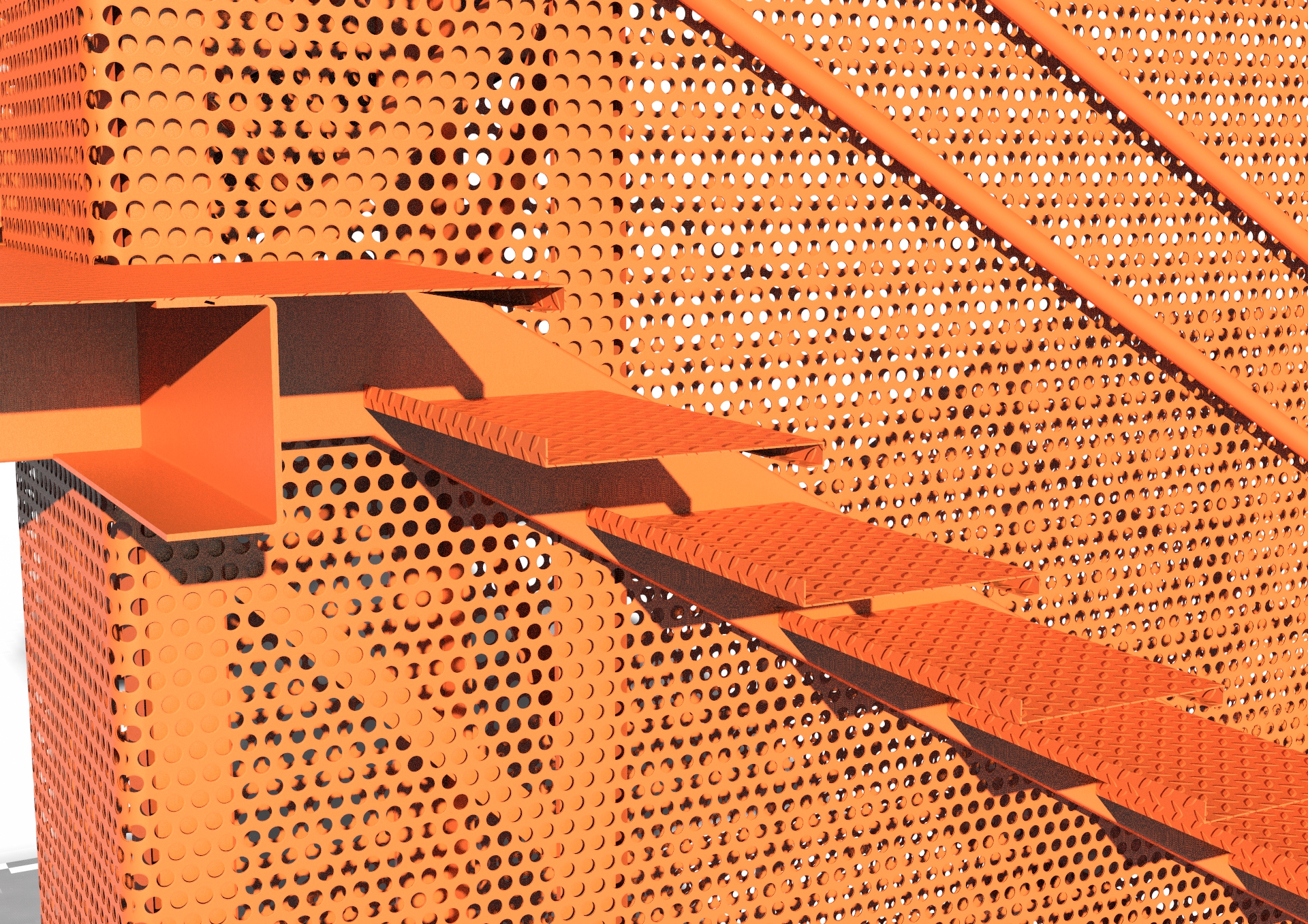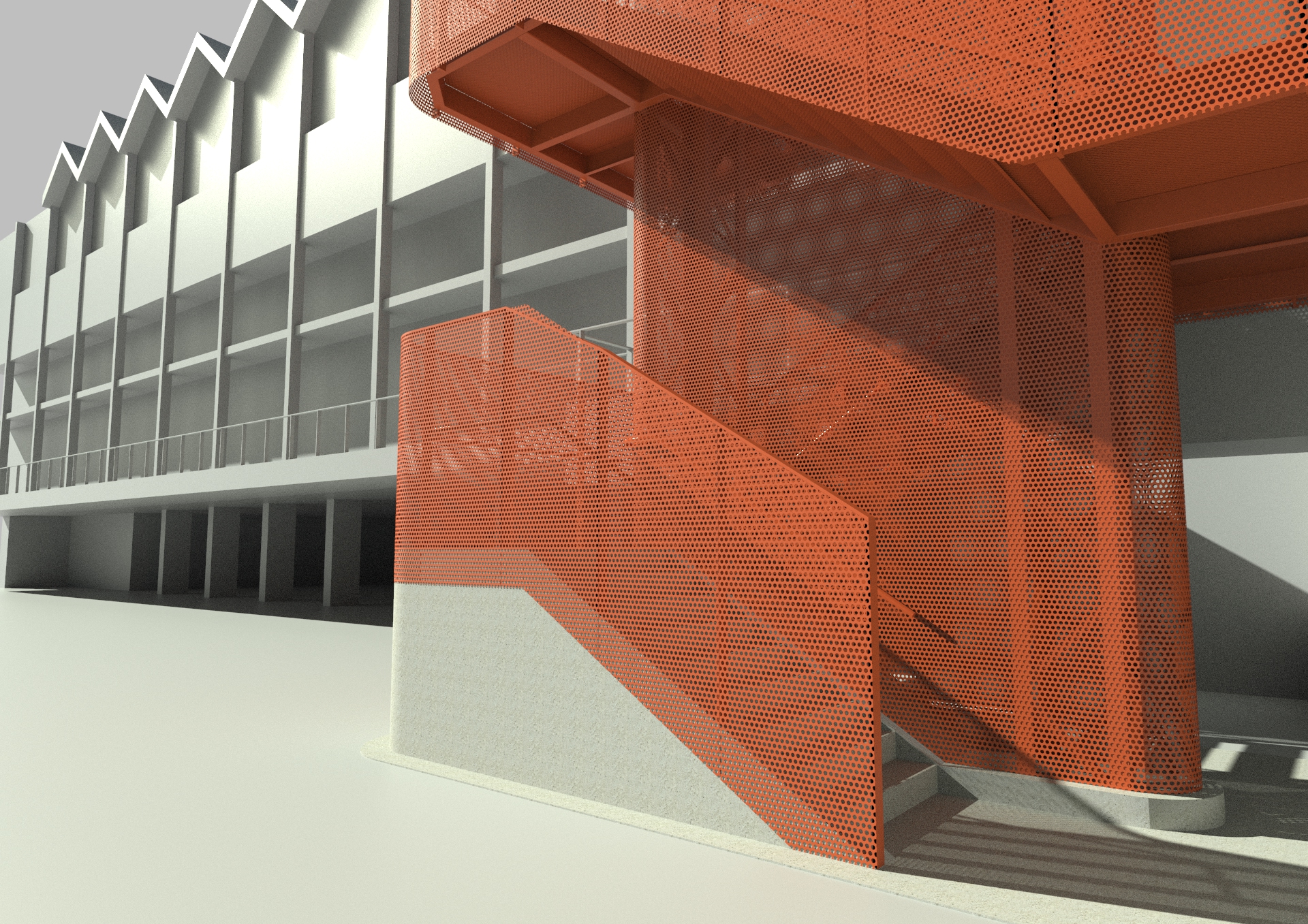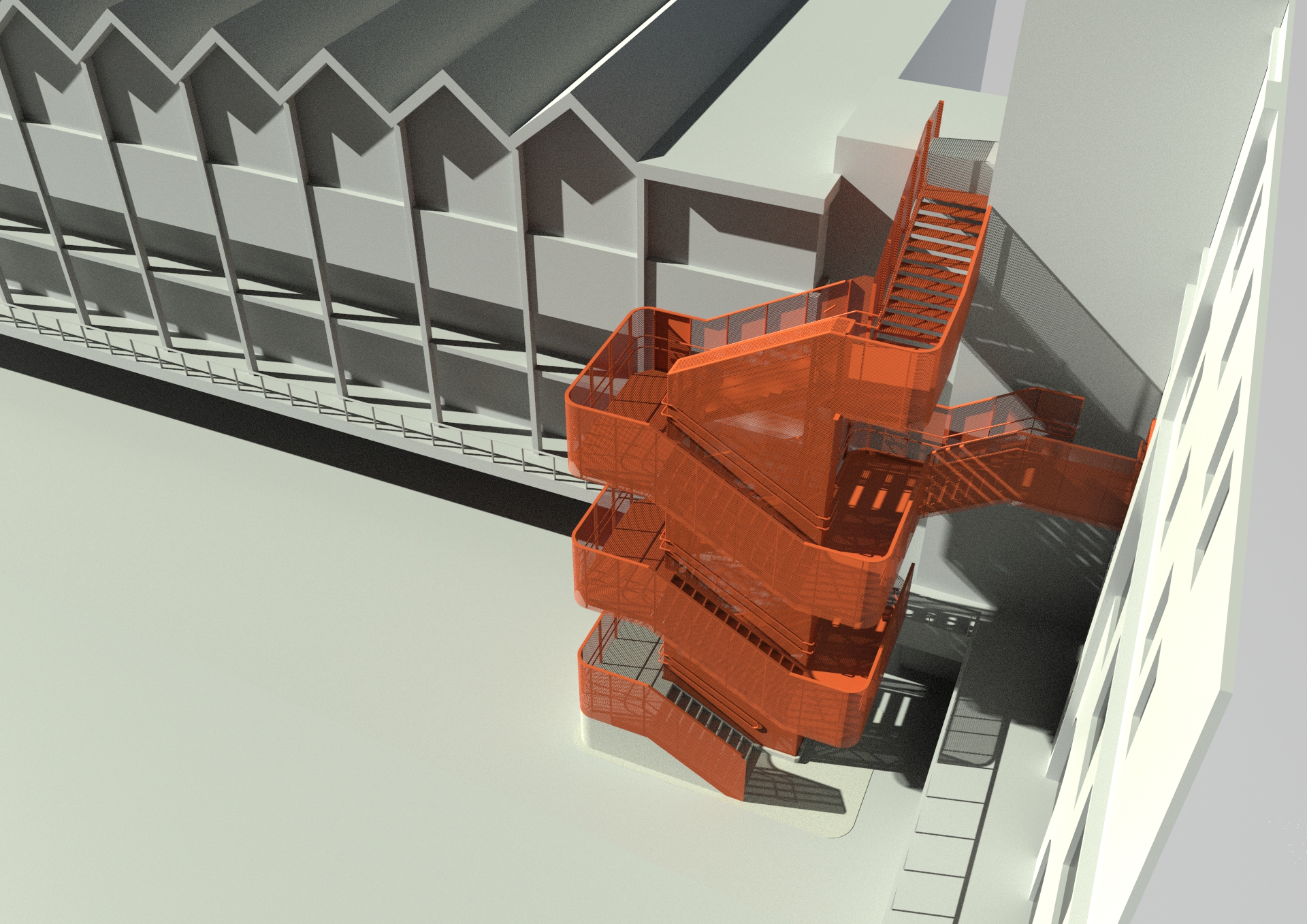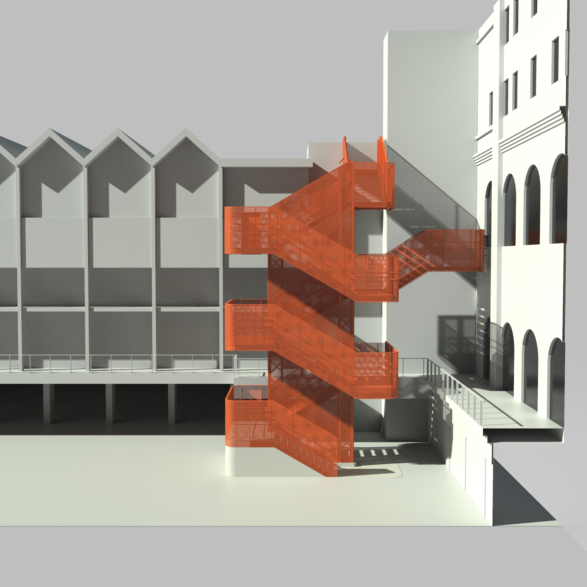 Diseñamos esta escalera de fuerte carácter con la doble función de adaptar al colegio a la normativa vigente de escuelas seguras y dar una impronta contemporánea a un colegio con más de un siglo de historia. Partimos del análisis de las sucesivas intervenciones arquitectónicas que Marcaron cada época del colegio, desde el neoclásico inical, los colores de los 70s y la modernización de los ascensores de los 90’s para dar propuesta desde la contemporaneidad con una pieza híper funcional y a su vez protagónica, de lenguaje industrial y sensible.