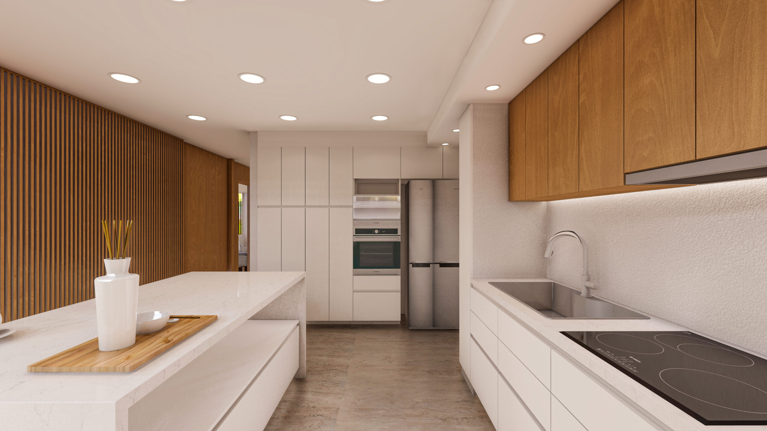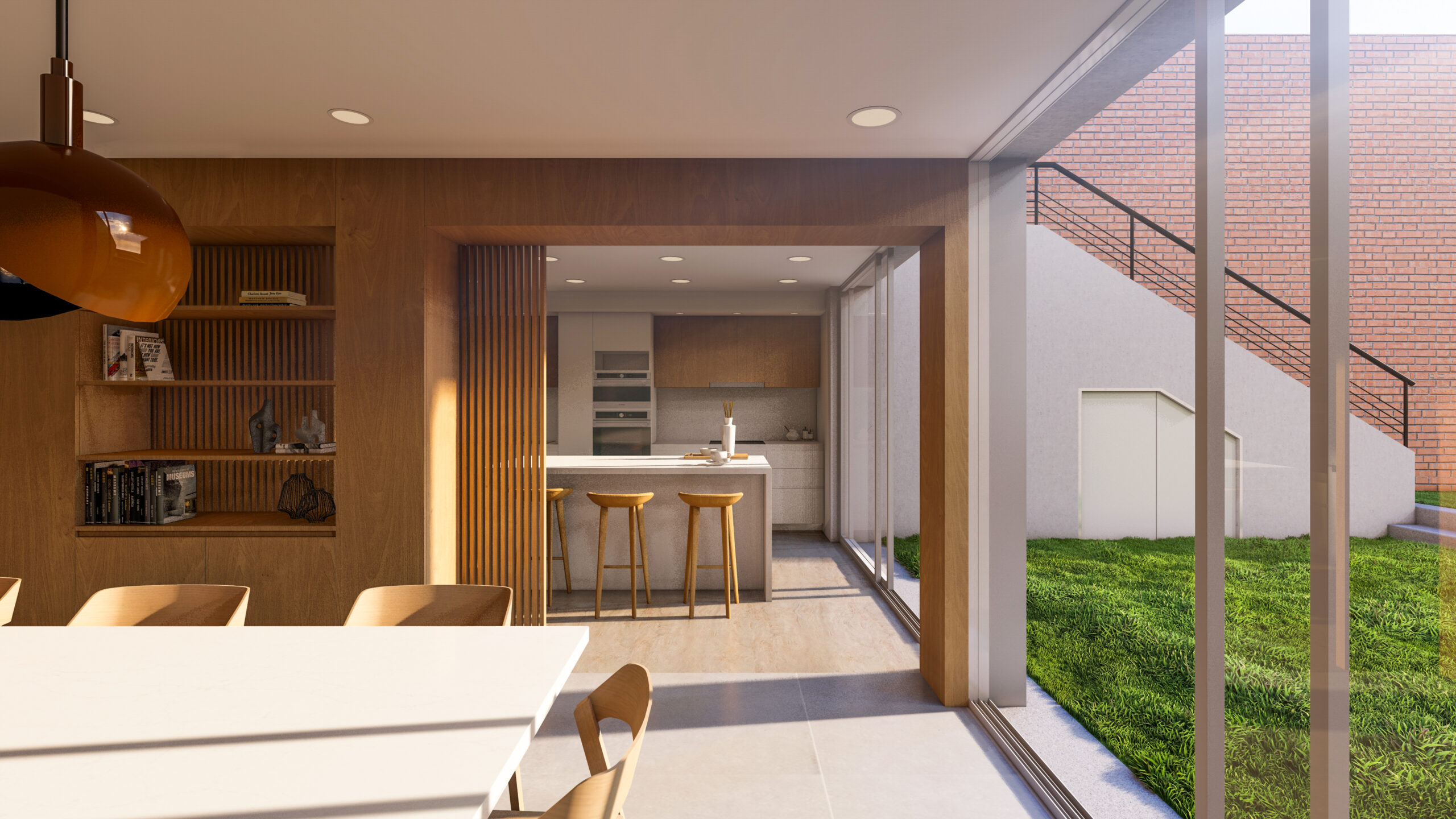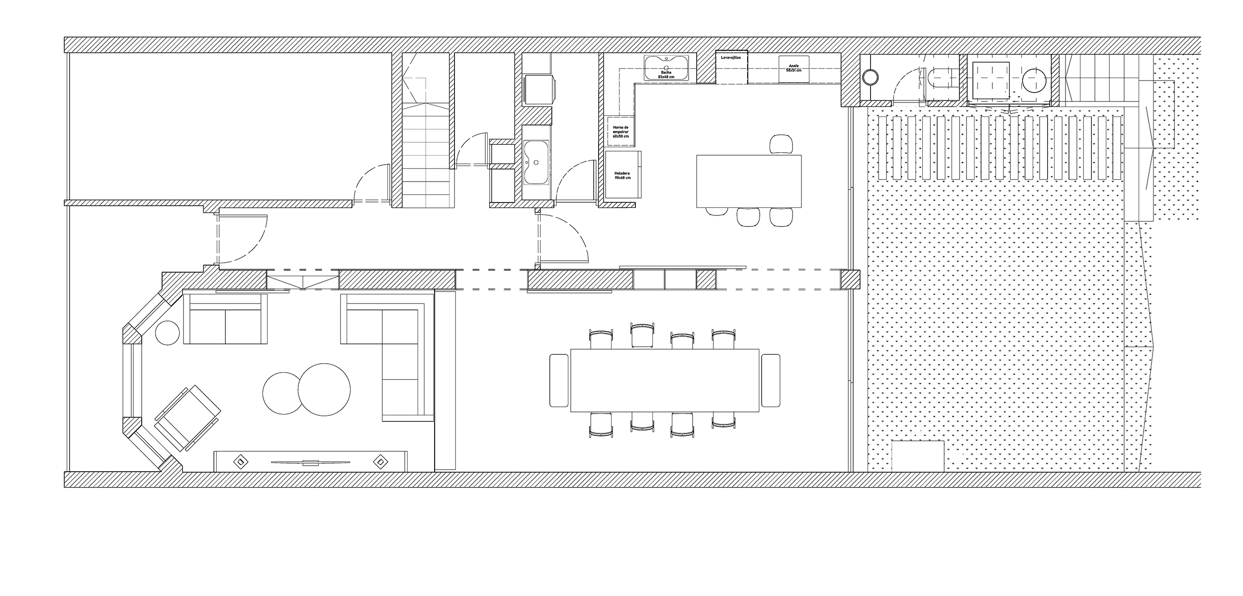 Un proyecto unifamiliar que parte desde la revalorización de los espacios comunes y la puesta en escena de una cocina protagónica que estaba escondida en su sitio original, para abrirse al parque y dar jerarquía a la activdad favorita del cliente: cocinar. Con intervenciones de sustracción de gestos propios de los 80’s y una visión unificadora y despojada que permite integrar el jardín y dejar que la luz natural alcance la profundidad de la planta.