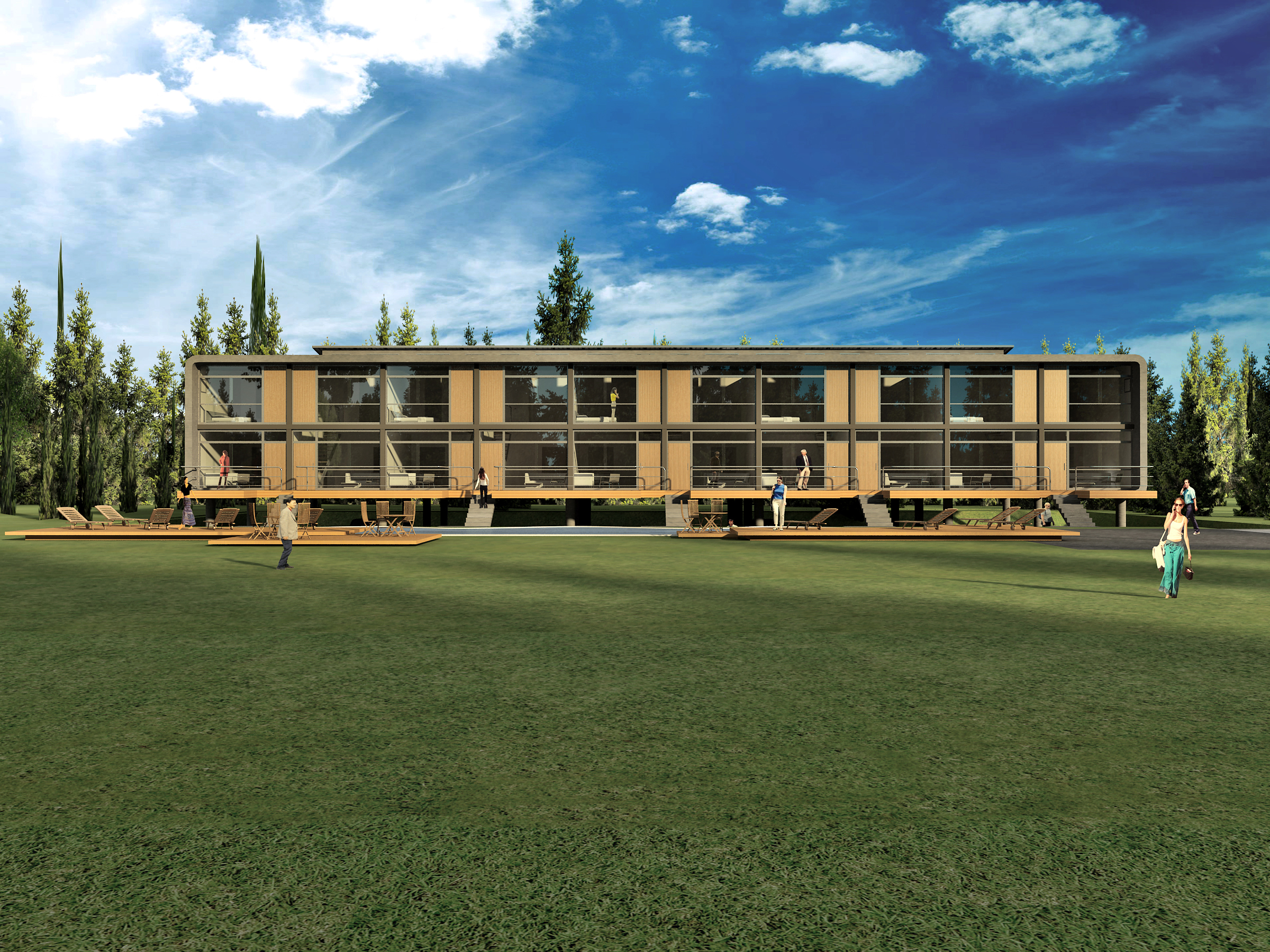 Complejo multi familiar de tipo apaisado, donde se encuentran la eficiencia constructiva con el máximo disfrute posible. Una planta de departamentos de 1 y 2 dormitorios, con terrazas individuales, cochera atrincherada de acceso directo y un sector de amenities que articula el paisaje en un entorno natural urbanizado