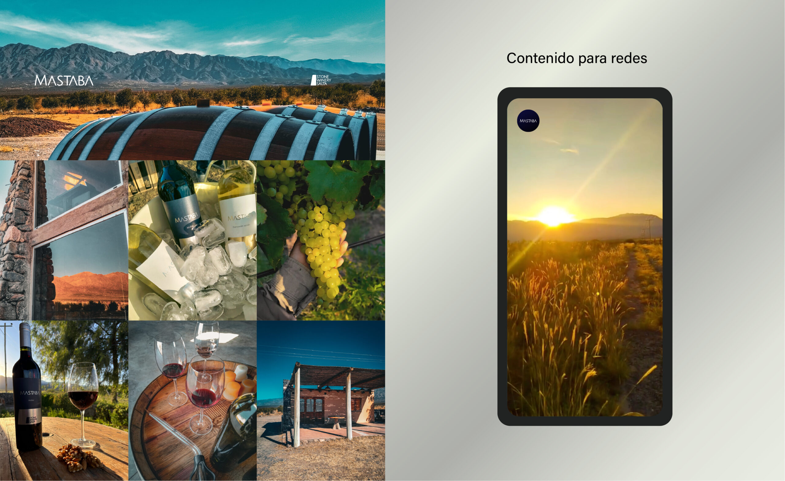 Para Mastaba se desarrolló un trabajo integral de identidad y comunicación, orientado a consolidar el posicionamiento de la marca y su expresión visual en distintos soportes. El proyecto incluyó el diseño de branding, la producción y dirección de fotografías, y la definición de una estrategia de comunicación para redes sociales, junto con el desarrollo de las piezas gráficas correspondientes. Como parte del sistema de marca, se diseñaron las etiquetas de vino, asegurando coherencia entre identidad, producto y comunicación, y construyendo un relato visual consistente que acompaña la experiencia de la marca en todos sus puntos de contacto.